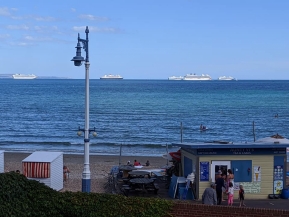 All safe in Weymouth by 6pm. Yes, the phone rang to confirm arrival and the WhatsApp pages started showing the cruise liners and the beaches and Maureen out with her mobility scooter and Kathryn on her bicycle and of course The Oasis Café they so love along at Preston; not somewhere we get to that often because it's a tad too far for us ida y vuelta which they always do. Avril's interest was how 'her' lilies in the flower box by the gate were doing and that was duly captured. But the Alarm Check-Up looks unlikely to be arranged during their stay. Later eh!