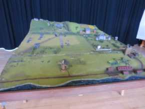 The War Game Board shown here, which is on display at the Community Centre throughout 3 Harbours Festival this year with the famous Prestonpans Tapestry, is a great way to get a very good orientation on the battle site as well as using the APP [arriving July] and the signs and boards now all in place.