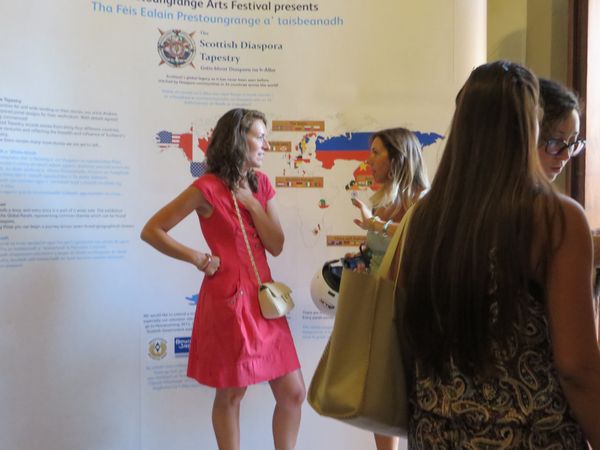 ‘When we first had the idea for the Scottish Diaspora Tapestry in 2011 we were not totally convinced it could ever be achieved across the world. To see what might be possible we resolved to ask you here in Barga, our twin town with such strong artistic links fostered by John Bellany, if you would have a go and stitch 6 panels telling something of your story. To our delight you said Yes, and you swiftly went on to stitch them so beautifully. It was that success you had, your enthusiastic and talented response to our invitation, that convinced us it could and indeed should be stitched across the world. And today, because of your example 33 other countries have added their beautifully embroidered tales to this artwork.
