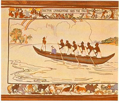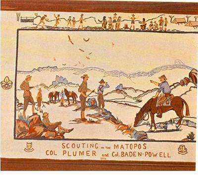 Everyone one of the panels holds great significance from a colonial perspective. Of enduring interest perhaps are 'Dr Livingston Sees the Falls' and 'Scouting in the Matopos with Col. Baden-Powell' in 1896, before his famous book Scouting for Boys published in 1908.