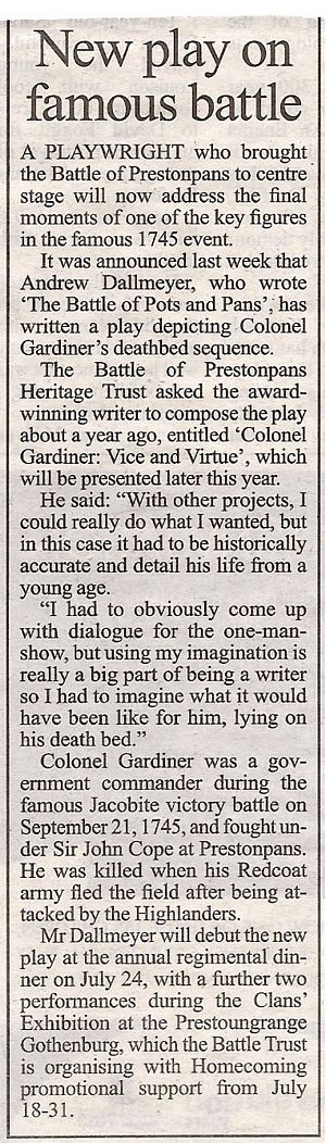Exploring Colonel Gardiner's Vices and Virtues - Prestonpans Battle Trust's Next Theatrepiece