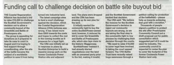 A massive show of public support and commitment to protect and interpret the 1745 Prestonpans battlesite ...