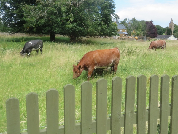 Cattle in The Dip again. Great to see over the palindromic fence and the California poppies [which have also arrived on the compost heap alongside the peas in the front garden!] and they came to talk with us before lunch.
