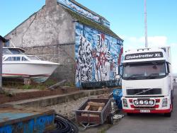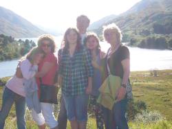Your webmaster found himself and family staying at Fassfern for a week as a base for excursions in support of the Tapestry Parade through the Highlands at Dalilea Pier, Glenuig, Glenfinnan, Stirling, Blair Castle and Perth. [Plus a fascinating side trip to Glenelg to take lunch at its excellent inn where our Poet Laureate’s son Kiernan is Head Chef. And there, blooming beautifully at Glenelg, at the start of September was the perfect white rose – as pictured!] Not to be missed either was Invergarry Castle, embroidered by Avril Wills as panel # 30 - seen below with her family visiting today's ruins.[ ... and finally, a mural is it not close by the ferry at Malaig!]