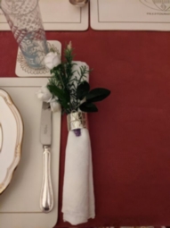 Lady Avril of Lochnaw was out in the snow collecting heather - seen growing to her left if you've clicked to enlarge; it nestles next to Baron Mathew's invitation for a Burn … [punctuation please]. Below Lorna, Maid of Prestoungrange, seems delighted with haggis veggie burgers?