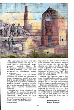Thanks to Roddy Simpson, a million and more readers of the Scots Magazine worldwide this April will learn about our Pans Mural Trail. As the blurb with his article suggests and his wise choice of illustrations depicts, The Pans is now probably the largest outdoor public art exhibition in Scotland, and growing ...
