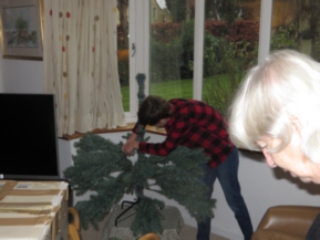 Fortunately for us at The Lodge, there was some marvellous roast beef and horseradish et al for Sunday lunch. British it seems rather than Irish …. Elliot couldn't stay for lunch but he'd helped our contribution to making the nation green by 2050 .. at least in the sitting room. And I was commended for "excellent coffee" as well as Maureen's gin laced cake. Even though my birthday is still three days away we'd resolved to catch up with most of the neighbourhood by placing our Christmas tree in the window .. yes with lights later.