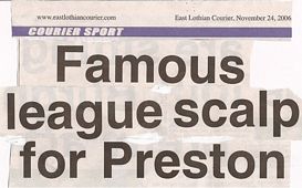 The victory by Preston Athletic [first time ever in the Scottish Cup despite earlier attempts] over 3rd Division promotion hopefuls Stenhousemuir, has continued to attract plaudits all round from the press this week as the selection below shows. What are we all to make of it in Prestonpans? What angles have the press spotted to spin us all up to such dizzy heights? Are we really wonderunder-dogs not just at Preston Athletic but even our town itself?