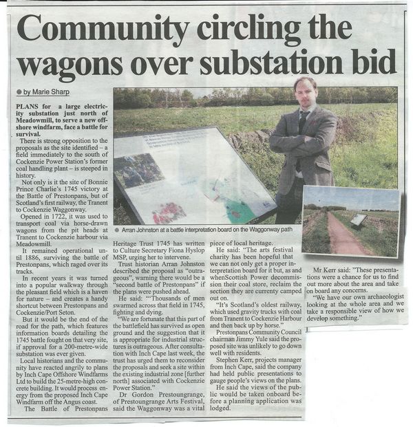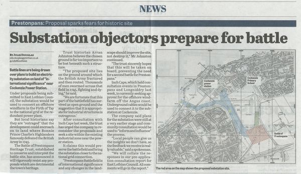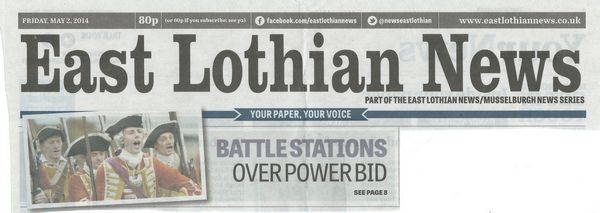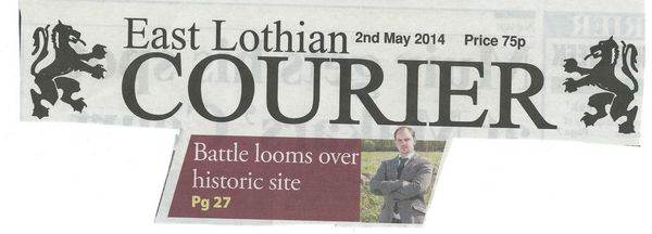 Nationally the Herald and the Edinburgh Evening News carried the Trust's protests. A letter has already gone to Fiona Hyslop MSP, the Cabinet Secretary for Culture which includes Historic Scotland, that maintains the National Battlefield Inventory. In East Lothian both the Courier and East Lothian News carried details from their senior reporters -