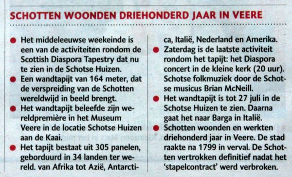 Wereldpremiere in Veere - Schots wandtapijt van 164 meter: 30 mei - 26 juli