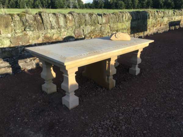 Lieutenant General Michael Riddell-Webster, Governor of Edinburgh Castle who served with The Black Watch, has visited the Memorial Tables on the Waggonway in formal remembrance of those who died. Crafted by Gardner Molloy, who met the General, he placed a wreath on the Table that lists all the Regiments of the British Army who fought there on September 21st 1745, including the Black Watch which defended Johnnie Cope’s Baggage Train at Cockenzie House. ADC to the Governor, Captain Lawrie Wotherspoon, was in attendance.
