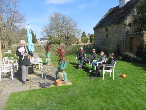 I've still not got to March 23rd ... The week following should have seen me at 3 Shires Hospital on the 18th having a right hip replacement but as already mentioned I saw a double whammy coming and opted out! But son Mathew from Ilkley had already sorted his logistics for a hospital visit linked to picking up two of his daughters from Nottingham and Birmingham Universities to take them home to study online. So he was able to visit Milton Malsor at a social distance and deliver Avril's Mother's Day gift of a plant in a bottle - a gift he'd previously achieved when he was 18 at school [he's now 53] as a Young Enterprise Project at Bugbrooke School from which endeavour he brought an archival matching coaster! He had Nottingham [Francesca] with him already and next needed to collect Natasha from B'rhm.