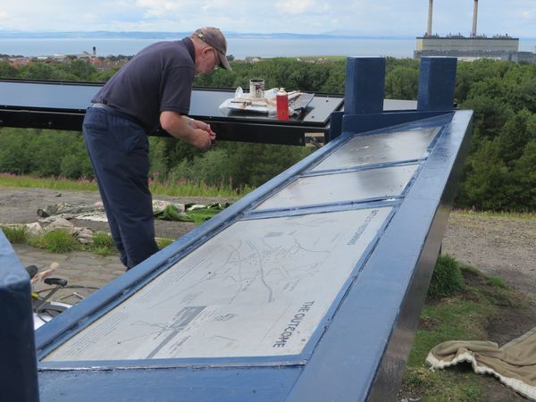 Arran Johnston has designed the new extended interpretation panels, all 8 of them, at the top of the Bing where the Prince's battle flag flies all year except ... for that one week when King George II's Union flag flutters in the breeze - it's there from the date he died till the date he was born. As can be seen the wind takes a heavy toll!