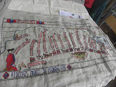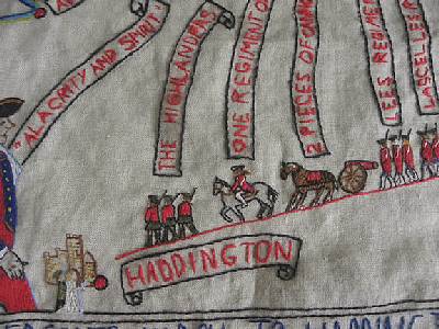 Stitchers' Progress thus far for the two panels is gladly reported here! Note carefully the lucky couple getting married in Haddington that day - history tells us the redcoat army cheeered as they passed by the celebrations!