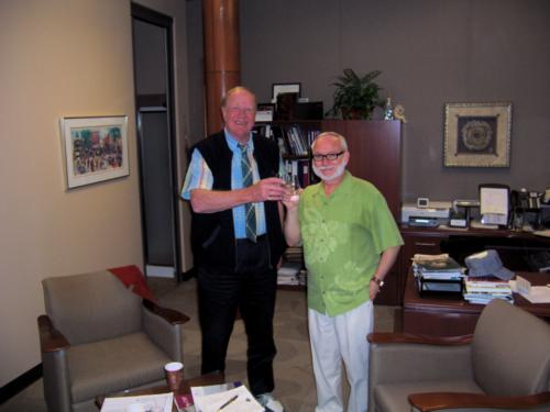 Pictured below is Past Chairman of the Trust, Gordon Prestoungrange, in Edmonton Alberta at a 'malted' meeting with Terry Carlyle, President - Edmonton Scottish Association. [Gordon's brother Bryan Wills lives in Alberta's capital and arranged the meeting earlier this month]. The observant will note Gordon sports Alberta's Provincial tartan on his tie! [Terry is an orthodontist.]