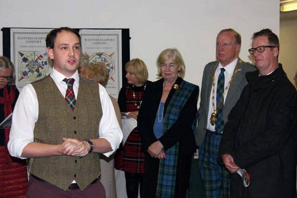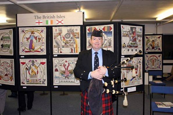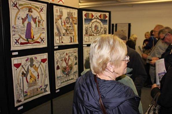And those radio words, press coverage and word of mouth from the proud stitchers brought a great crowd to the Opening Night on Monday November 24th. On the following days amongst those eager to see were local Labour MP Andy Sawford and Ian Cameron, Trustee of The Rooftop Gallery. "Very impressed we are." Also as was to be expected were Mr Scotland himself, John Douglas, and Judy Caine, former Mayor of Corby who helped us get organised in 2013 when stitching got going.