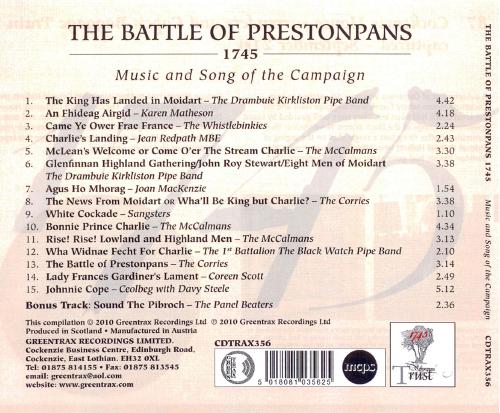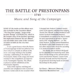 The Battle Trust and all the Stitchers were absolutely delighted when Ian Green of Greentrax 'volunteered' to create a CD of songs and music from Bonnie Prince Charlie's campaign to Prestonpans in 1745. And from start to finish it's taken just 6 weeks, which Ian says is not normal!