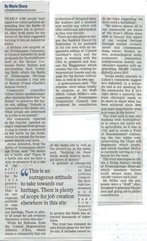 The Trust is grateful that the East Lothian Courier this week carried some details that can help. [Apologies that the text does not run totally smoothly - we've cut Marie Sharp's reporting to fit our page here!]