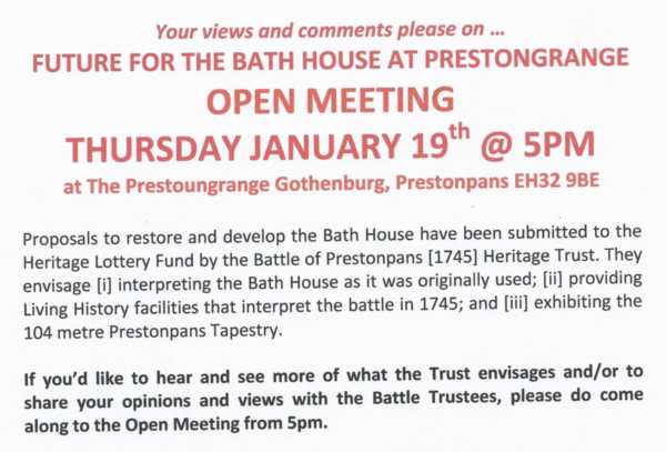 OPEN MEETING re Prestongrange Bath House Restoration and Future UseMuch interest has been aroused and discussed on Facebook ... now a welcome chance for f2f
