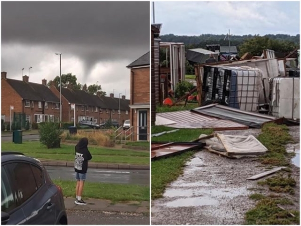 ...or was it a funnel cloud?, That's seemingly the correct meteorological description. It formed at around 8pm July 25th. Although often referred to as tornados, the Met Office confirmed spinning, cone-shaped clouds only take the name tornados if they touch ground! But just a moment, this one did at Allotments from Duston to Kingsthorpe! Funnel clouds in the UK look like thin dangling bits of rope, hanging from the cloud above. But in hotspots such as Tornado Alley in the USA funnel clouds are often thicker and much more intense. They form when a rotating column of wind draws in cloud droplets making a region of intense low pressure visible. They are typically associated with the formation of cumulonimbus thunderclouds. When a funnel cloud makes contact with the ground and produce a tornado very strong winds can be expected in the immediate vicinity of the vortex potentially causing severe damage. We'd lived in The Alley in 1976 when I was teaching at University of Tulsa and the boys went to school; Avril became an expert on them! In a typical year, the UK sees around 30-35 tornadoes though it is very rare that are they strong enough to cause any significant damage.