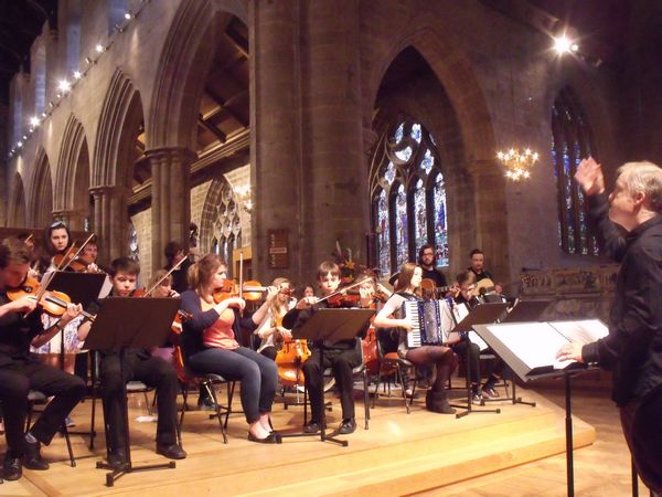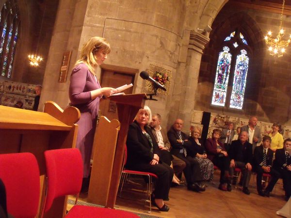 Arran then introduced Patsy Reid [pictured above], who had composed a special piece of music specifically for the occasion entitled Hope Ambition and Victory. After Patsy described the inspiration she had found in the Tapestry and the Prince’s story, she joined the young musicians of the Gordon Duncan Experience for the piece’s inaugural performance.