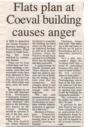 Listed in the Planning Papers for East Lothian Council this month is a request from Lidl themselves to build 56 flats on the site of the old Fowler's HQ. The file is @