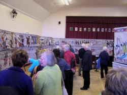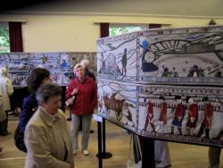 Gullane's stitchers had got together straight after July 26th in a determined effort to make sure the day The Prestonpans Tapestry came to their excellent Village Hall would be one to remember. And so it was. 723 visitors came to the Hall in the single day and the Guidebooks sold out.