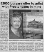 June Coull [Morgan] the winner of the Arts Festival's £2000 Burriss Bursary for 2004/ 2005 is making preparations for the Exhibition of her achieved work. It will be held at The Prestoungrange Gothenburg from July 4th - 17th.