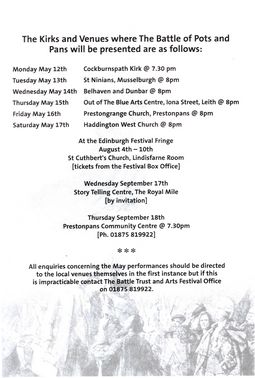 Trustees Proudly Announce Battle of Pots & Pans is to Tour East Lothian from May 12th / 17th 2008