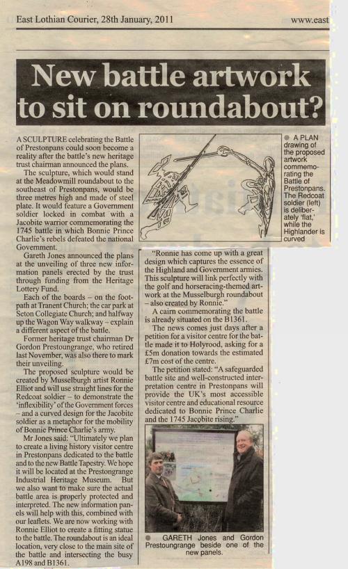 Hopefully there are more to come with Ronnie Elliot who's sculptural work already graces two roundabouts in Musselburgh on course to add a third with Highlander and Redcoat engaged in battle - as depicted in outline below.