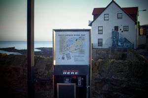 It's not What the Butler Saw! It dispenses a trio of Arts Festival leaflets being the guides for visitors to the Murals Trail, the Witches Remembrance and the Battlefield Walk. To actuate it you only need to insert a £1 coin.
