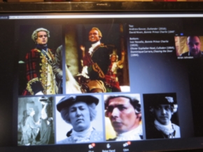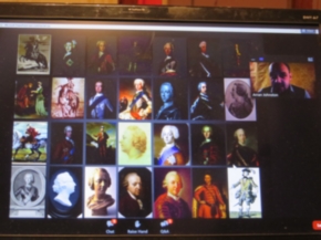 Arran Johnston offered two thoughts for the occasion. At lunch time he screened a whimsical 3 minute YouTube tale of the painting of a portrait of The Prince by Ramsay at The Palace of Holyrood House - in fact the filming was in the James Park Bistro of The Gothenburg! Since the idea was conceived there has once again been controversy over whether Ramsay truly was the painter … comme-ci comme ça! And at 8pm Facebook shared an over-subscribed hour long ZOOM Webinar 300th Birthday of Bonnie Prince Charlie. It was as usual a tour de force with Arran boxed top right of images 2 and 3, but he made less reference than he might have done to his earlier Valour Does Not Wait. It had great attendance and augurs well for the putative programme in 2021 we intend and I'd like to think we can get Doline Maclennan to include a Gaelic singing and poetry selection as one of the sessions. The second images shows a generous selection of portraits and the third stars from the movies; the fourth of course shows our 'own' portrait of The Prince.