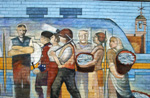 Andrew Crummy's latest, and longest at 90' x 10', mural at Cockenzie Power Station was unveiled to considerable local acclaim and at a most enjoyable ceremony on October 5th. The Edinburgh Evening News foretold the occasion nicely. Scotland UnLtd contributed some 50% of the cost and the Prestoungrange Arts Festival the balance.