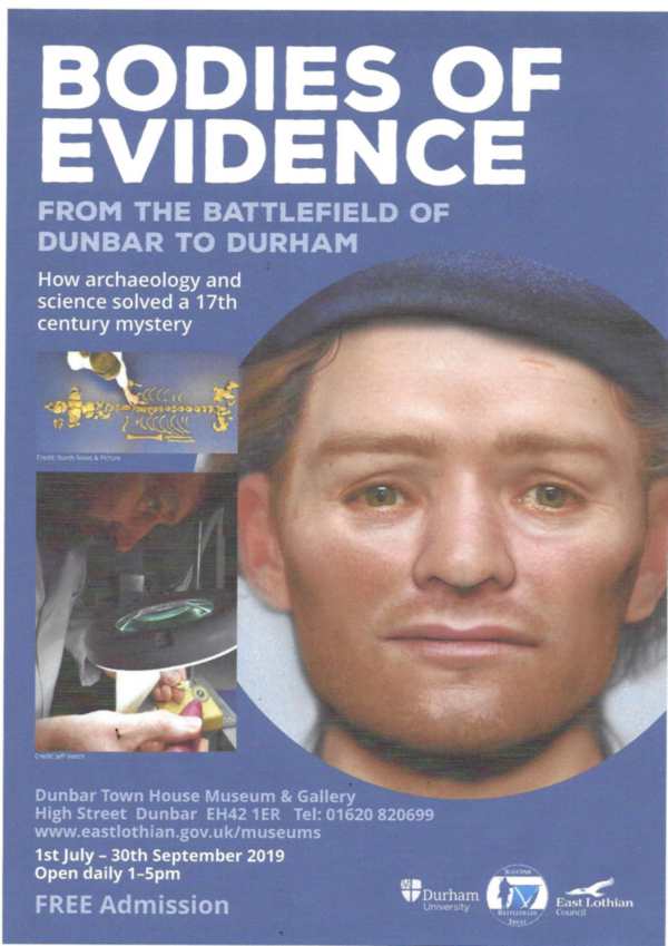 Ed: Official Release: The Scottish Battlefields Trust has partnered with East Lothian Council and Durham University to present the “Bodies of Evidence” exhibition at Dunbar Town House Museum. It will open officially on Saturday 29 June, and will be open 1-5pm daily until 30th September.