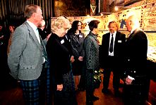 So, when Princess Anne was visiting 'her' stone masons it was an opportunity for her also to see a few panels displayed in the Song School, meet some stitchers and more besides. Sarah Grotrian from the Cathedral made the introductions whilst Andrew Crummy told this particular 'visitor' our story [pictured below with our tour manager Arran Johnston].