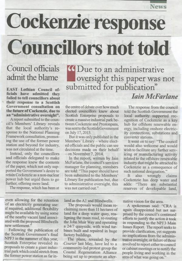 As the CRA observes, the community didn't know what had been cooked up, including the suggestions for Blindwells, but neither did the Council's Cabinet or Council Members at large. Well well. Quite an administrative oversight, more like a ....