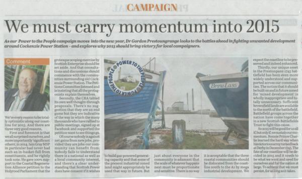 We've got to sustain the momentum throughout 2015. And it's great news that both The Courier and East Lothian News are determined to stay the course with the community as the stooshie rumbles on.