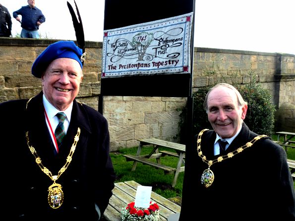The Prestonpans Tapestry had a great week in Corby, including St Andrew's Night celebrations at The Grampian Club. Then it was on to Derby. There, this year, despite the most determined attempts, the optimal display was just of the title panel at Swarkestone Bridge. The balance stayed in the orange van in the car park!