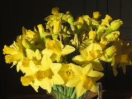 Daffodils and fresh roses. We've made a point of having fresh flowers all the while during lockdown; much of the time the garden gave us plenty to enjoy. However Anne goaded us from Edmonton with talk of Spring flowers and we've seen snow drops and primroses here already - and a lot reported from Ilkley. But my shopping with M&S last week brought home a bundle of daffodils which can be seen below - brilliant. The white roses of York however fared badly and I made a sortie to Tesco early today for the replacement shown.