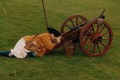 On the morning of September 21st, as the Camerons charged the artillery which was all on the Hanoverian right flank, the navy and pensioner gunners ran for their lives taking the powder and horses with them leaving Colonel Whitefoord and Master Gunner Griffith to fire just a single salvo. [The 1995 re-enactment did indeed have a merry collection of only partially 'authentic' artillery pieces as shown below click to enlarge, but where are they now?]