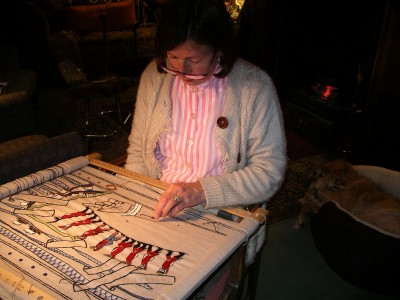 Jenny Haldane's hard at work on Panel # 37 specs carefully poised, capturing details of that forced march ...