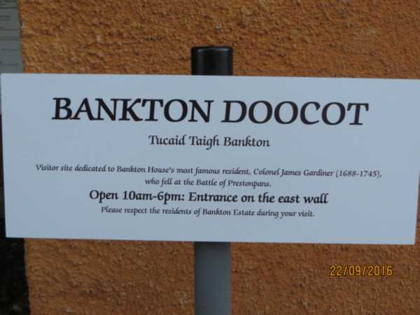 The Battle Trust was fortunate to receive a grant from Viridor in 2015 to to restore the Bankton Doo'cot to tell the story of Colonel Gardiner - who of course lived at Bankton House until his death in 1745.