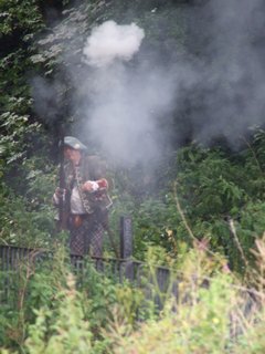 Accordingly, with the much appreciated assistance of the Glenbuckets and our own Alan Breck Colonel Agitant, Adam Watters, the skirmish was re-enacted. A redcoat cannon laid fire on them.