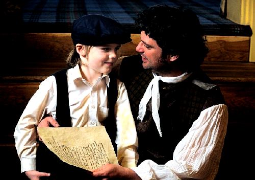 Pictured below, Steve – playing Rabbie Burns – reads poetry to son Arron Aitchison as part of the event.