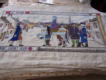 Frances Gardiner was at the Cockenzie Studio last Thursday to deliver the panel she and colleagues from North Berwick's Halflinbarns Schoolhouse Weaving Group have now completed - the Prince occupying Falkirk unopposed. The very fine horse is an old Scottish/ Irish breed.