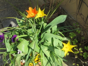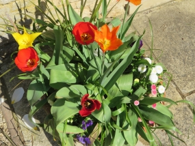 But the more protected front porch at The Lodge has given good opportunity for the tulip tubs to blossom.
