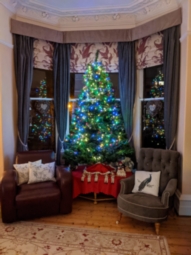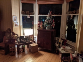 Lockdown is finding work for idle hands … decorations going up outdoors all over town … The reindeer are back this year and the snow fall at the BIG House next door …