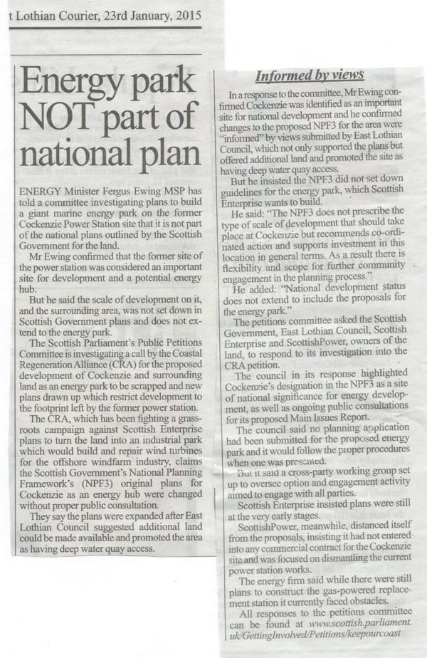 Minister Fergus Ewing MSP speaks up. That Energy Park is not in the National Plan