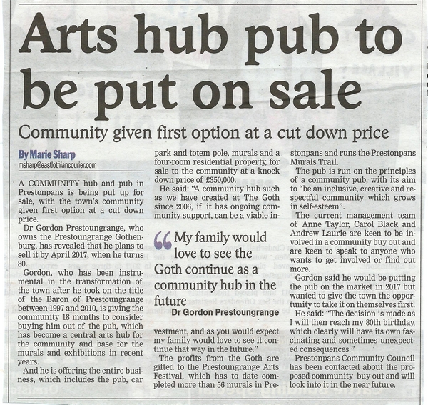 Pubs that survive become new style of social/ community assets .. The Goth has the image and the history and is frankly iconic way beyond The Pans [The Lord Mayor of Gothenburg has been 3 times!] ... if the Community is to Buy it will be because of what happens next rather than what we have as our status quo after the last decade of investment and creativity for the community.