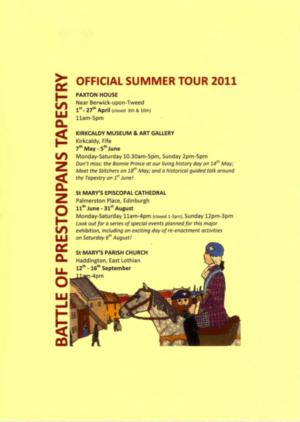 KIRKCALDY MUSEUM & ART GALLERY May 7th/ June 5th [Monday/ Saturday 10.30 am/ 5 pm; Sunday 2 noon/ 5 pm] Living History with Bonnie Prince Charlie May 14th; Meet the Stitchers May 18th; Guided Talk around the Tapestry June 1st.